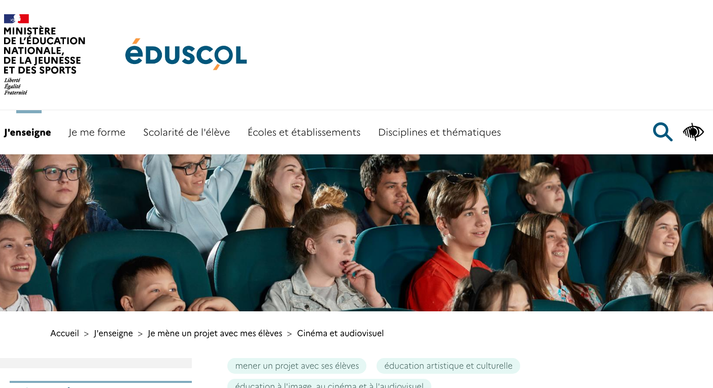 Pour découvrir les programmes officiels et des ressources pour la classe de cinéma, le site officiel du Ministère de l’Éducation Nationale, de la Jeunesse et des Sports